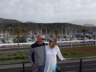 Dieser sehr schöne Wanderweg entlang des Inneren des Kraterrandes war bei unserem ersten Besuch gesperrt. Wir wollen ihn jetzt nachholen. Wir haben uns mit Laura verabredet und treffen uns um 1200h nach für uns zweistündiger Kurverei mit dem Auto (für gut 30 km) am Mirador. Leider haben wir wieder Calima und demensprechend begrenzte Fernsicht. Es ist auch recht starker Wind und auf rd. 2.400 Metern Höhe empfindlich kühl. Beim Start in Tazacorte haben wir 22°. Am "Mirador des Los Adenes" angekommen waren es noch 8°. Also ziehen wir uns erstmal lange Hosen und warme Fliesjacken an. Trotzdem frieren wir, und wir müssen sehen, dass wir möglichst schnell in die Sonne und die Windabdeckung am Hang kommen. Der Wanderweg ist gut ausgeschildert und eine Mischung aus Klettern zwischen Felsen, Sandwegen und angelegten gepflasterten Wegen. gesamt 2. Sabbatical 1.029,4 nm