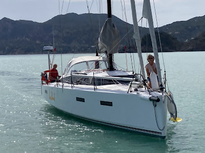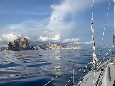 Während wir im noch schwachen Wind auf dem Weg nach Mallorca langsam in Fahrt kommen .... |